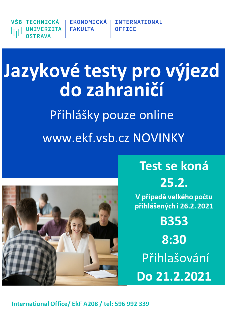 Studenti, kteří mají zájem vyjet v ZS 2021/22 na studijní pobyt nebo pracovní stáž do zahraničí, se mohou přihlásit na jazykové testy.