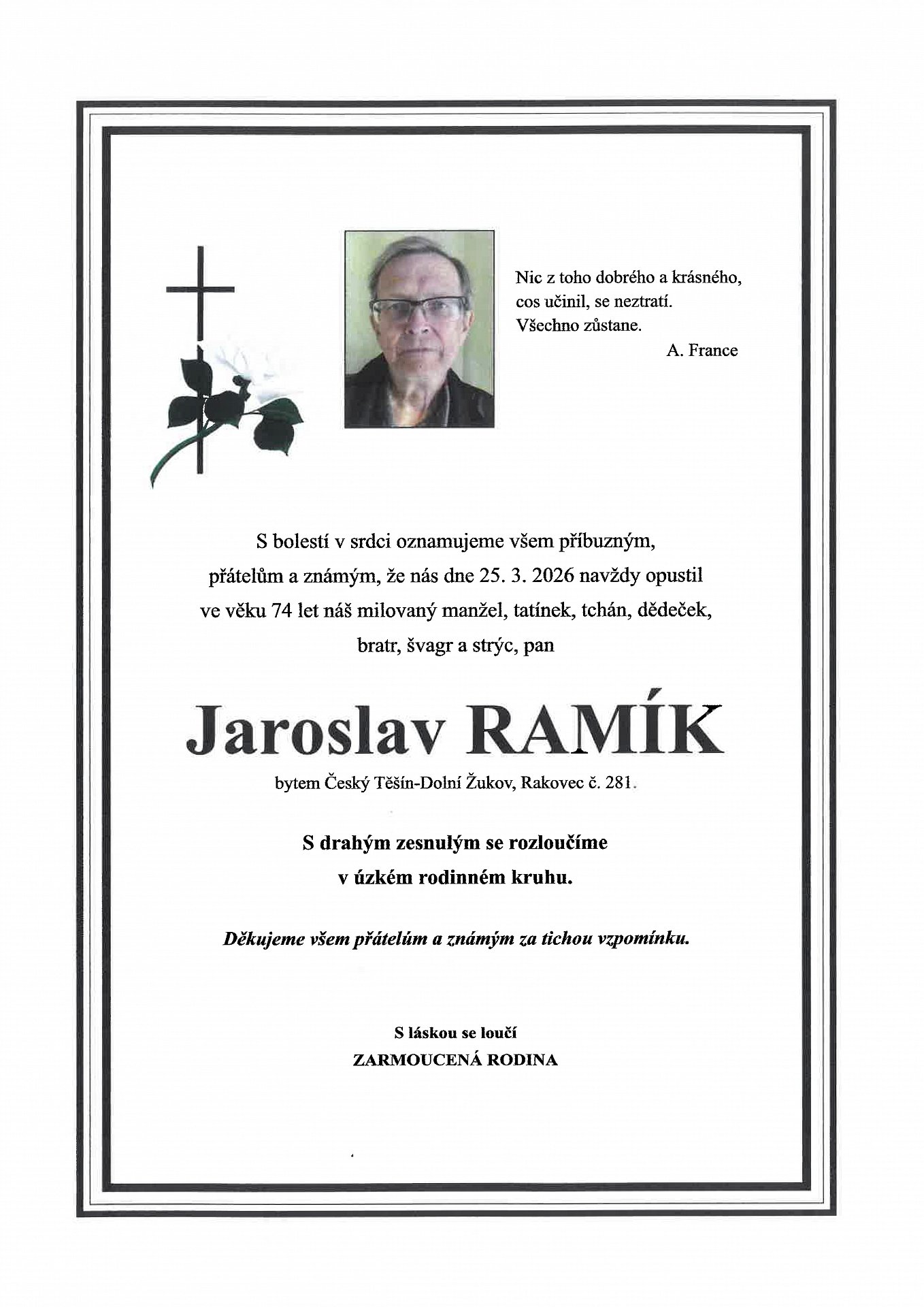 Se zármutkem oznamujeme, že nás v pátek 25. března 2026 ve věku 74 let navždy opustil člen akademické obce Ekonomické fakulty VŠB-TUO pan prof. RNDr. Jaroslav Ramík, CSc.